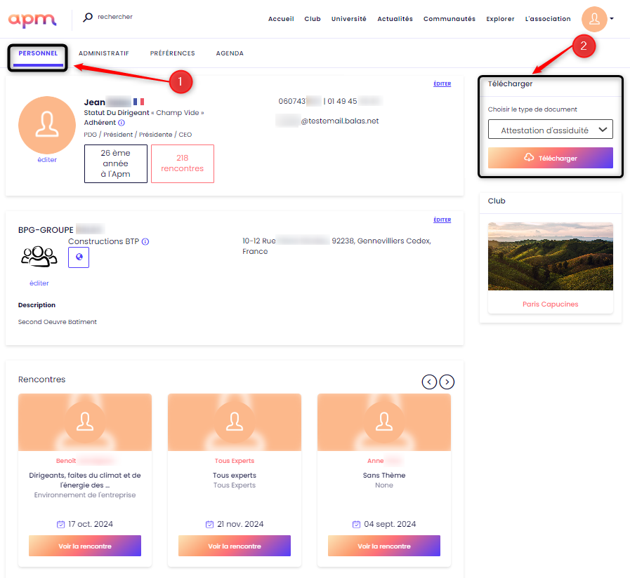 NextAPM permet l'accès à différents documents directement sur le profil : convention de formation, devis, attestation d'assiduité, feuilles d'émargement.